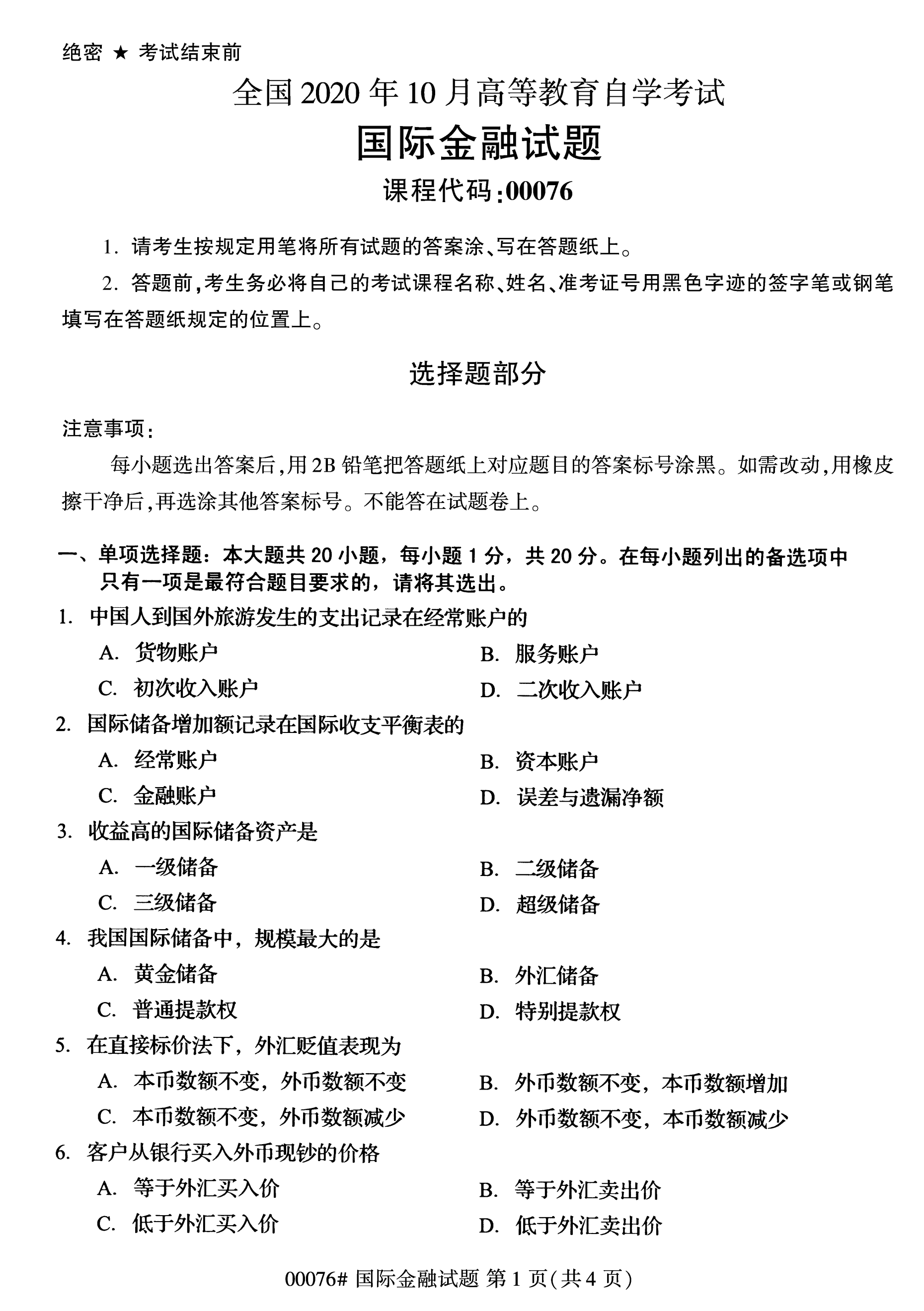 福建自考全國(guó)卷國(guó)際金融(00076)試題