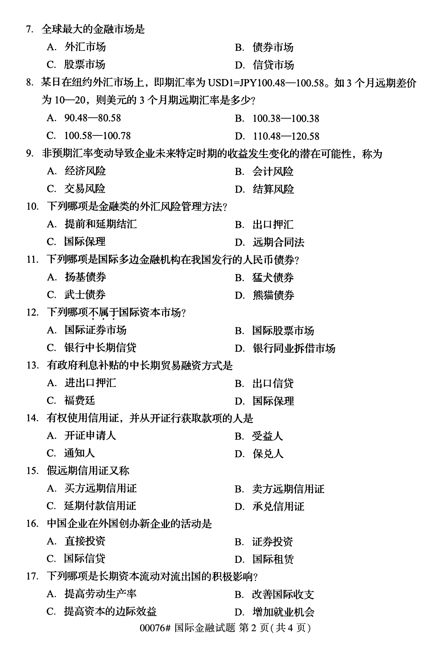 所在位置:福建自考網(wǎng) > 試題題庫 > 自考試題 > 福建自考全國(guó)卷國(guó)際金融(00076)試題