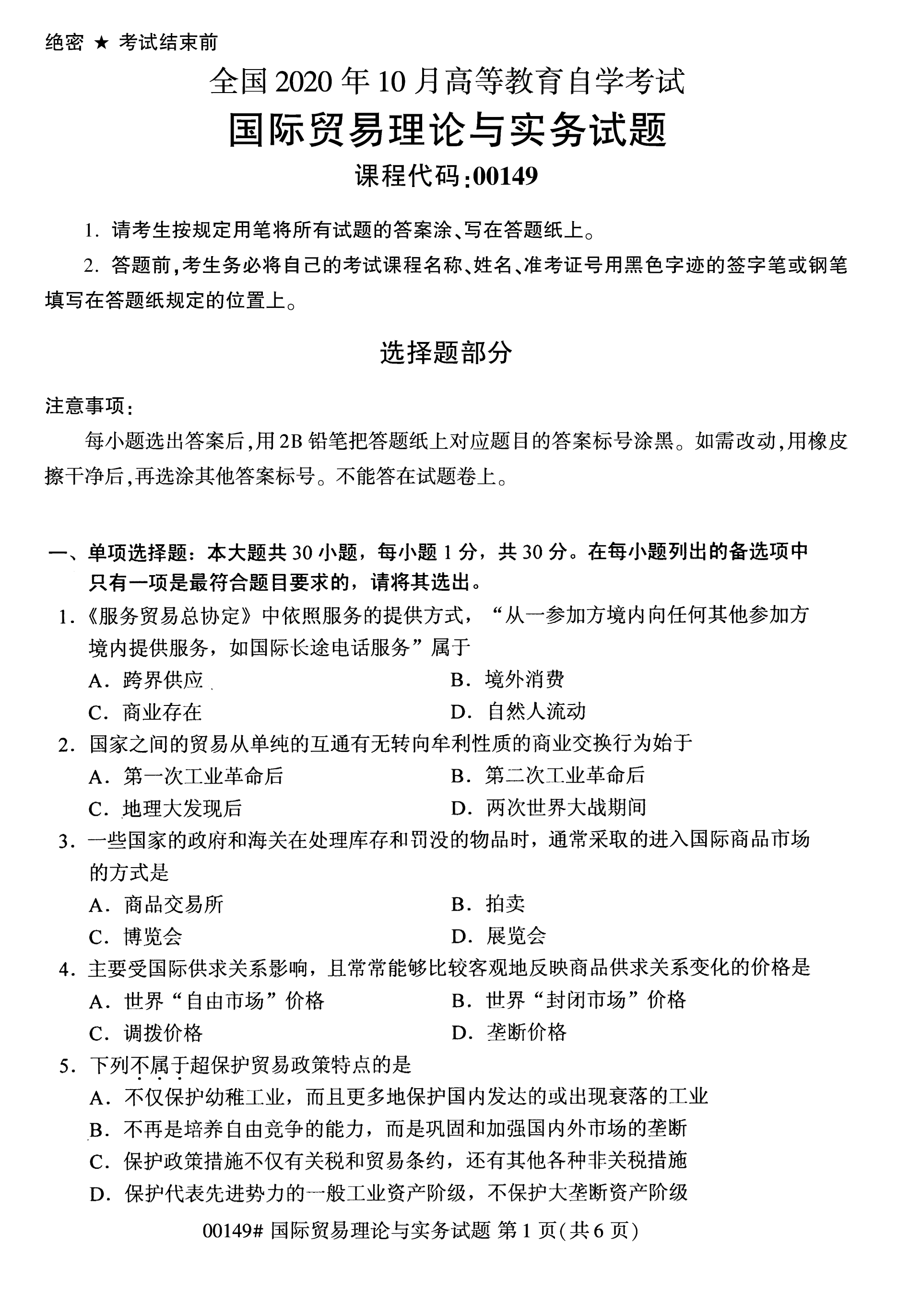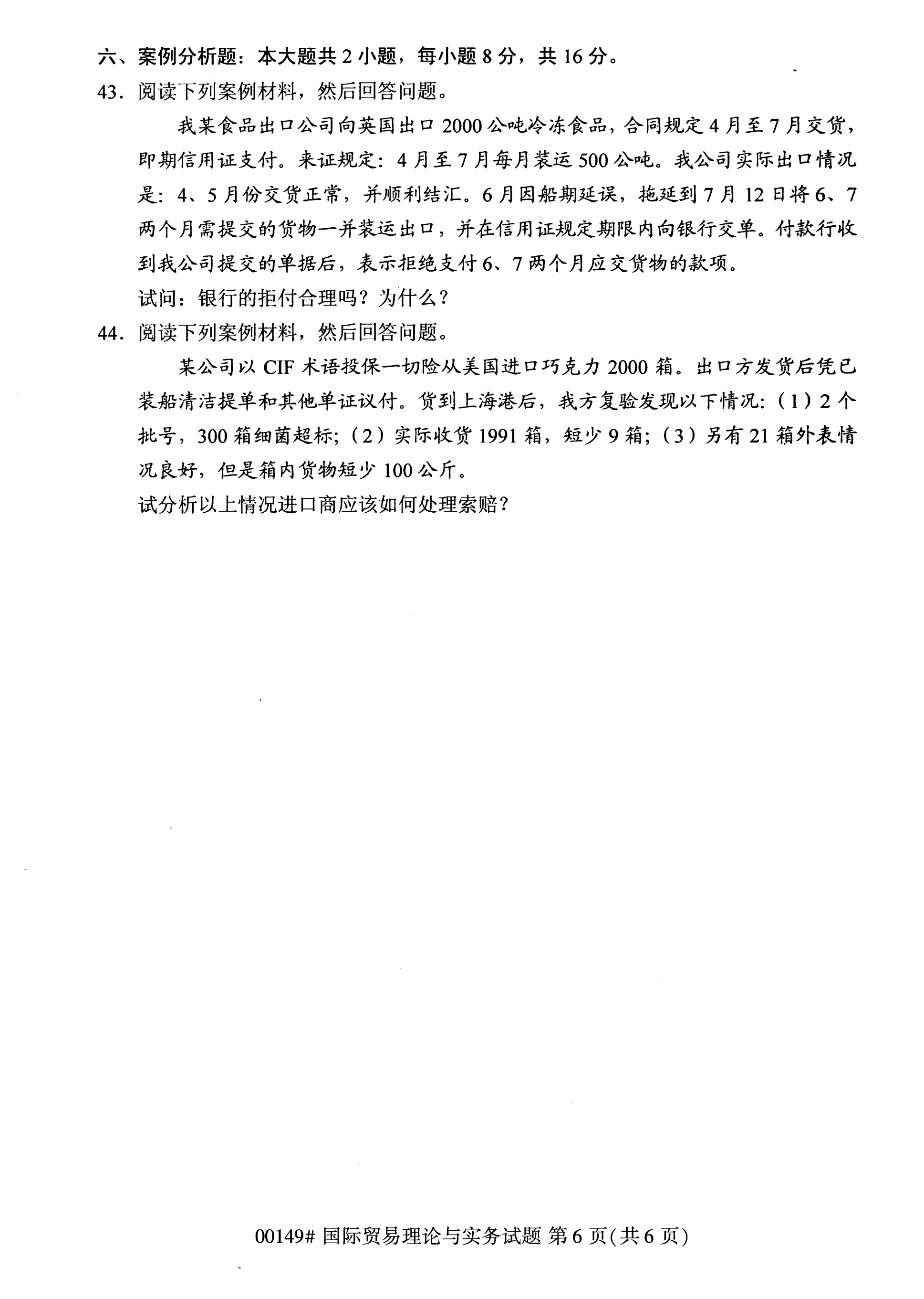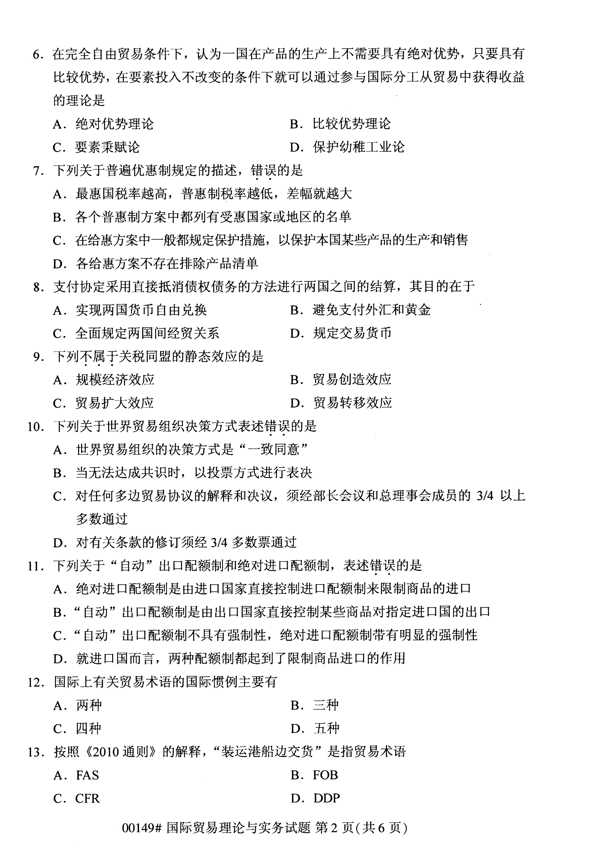 福建自考全國卷國際貿(mào)易理論與實務(wù)(00149)試題