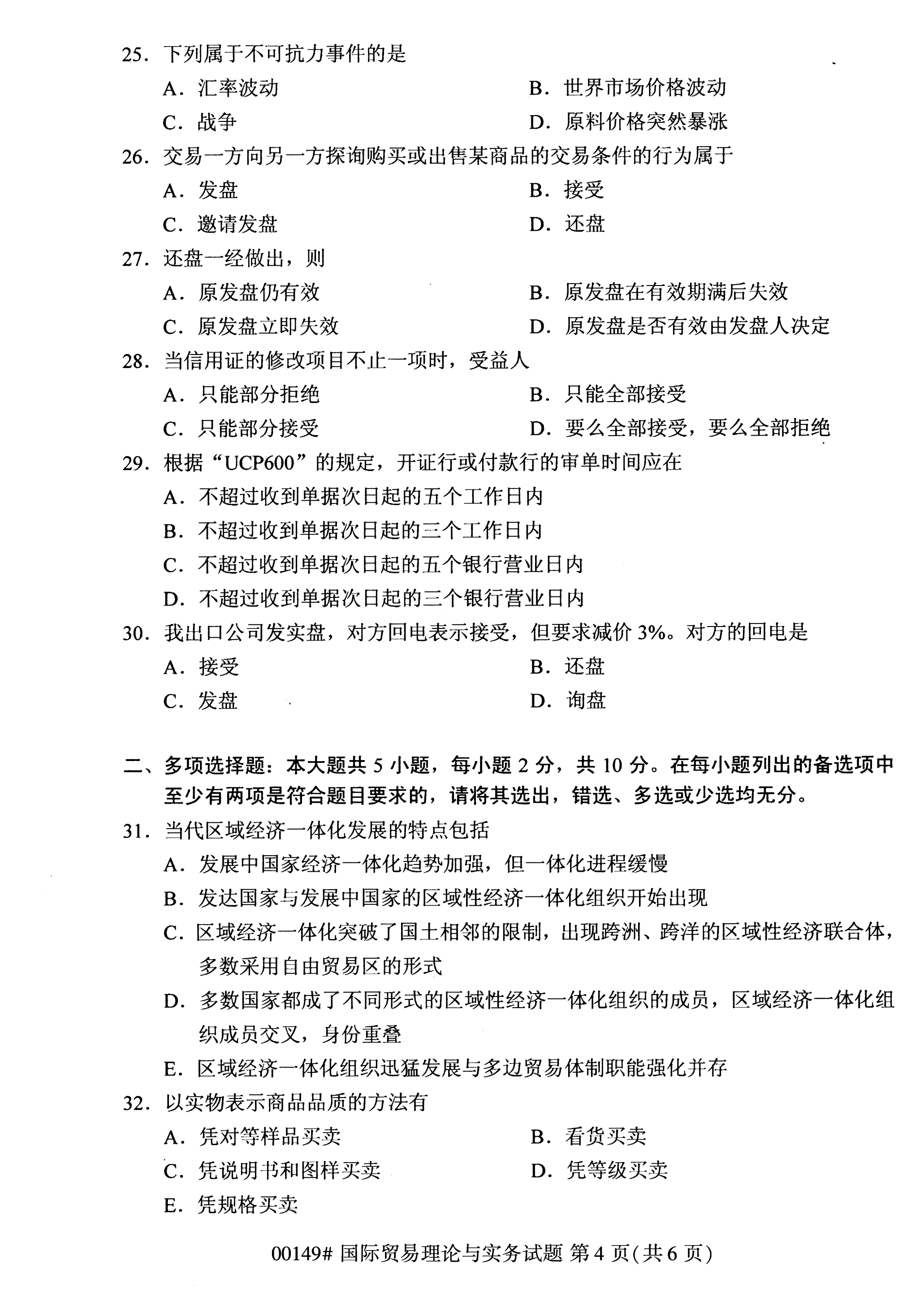 所在位置:福建自考網(wǎng) > 試題題庫 > 自考試題 > 福建自考全國卷國際貿(mào)易理論與實務(wù)(00149)試題