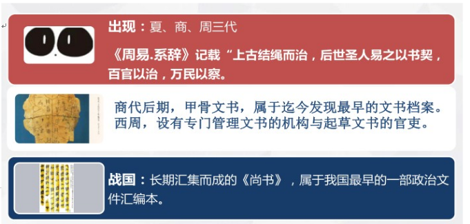 3、西周:設(shè)立了專門管理文書的機構(gòu)與起草文書的官吏;